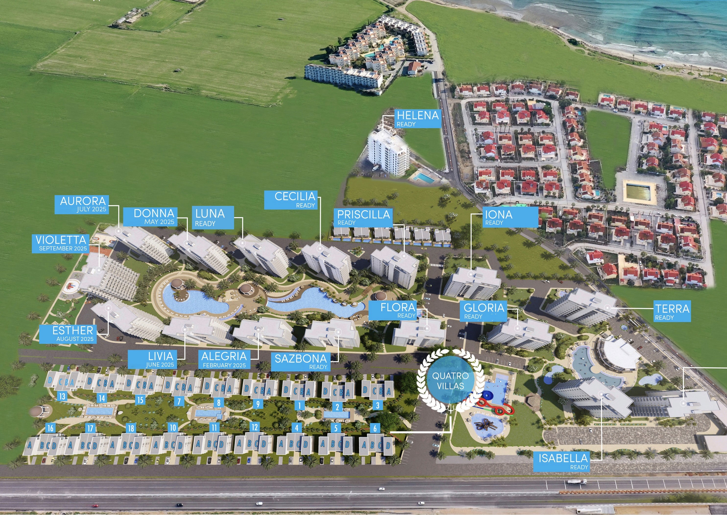 Caesar Blue lays beside a sandy beach on the edge of the Mediterranean Sea. These all inclusive seaside luxury apartments with an Aqua Club complex is a true North Cyprus delight.