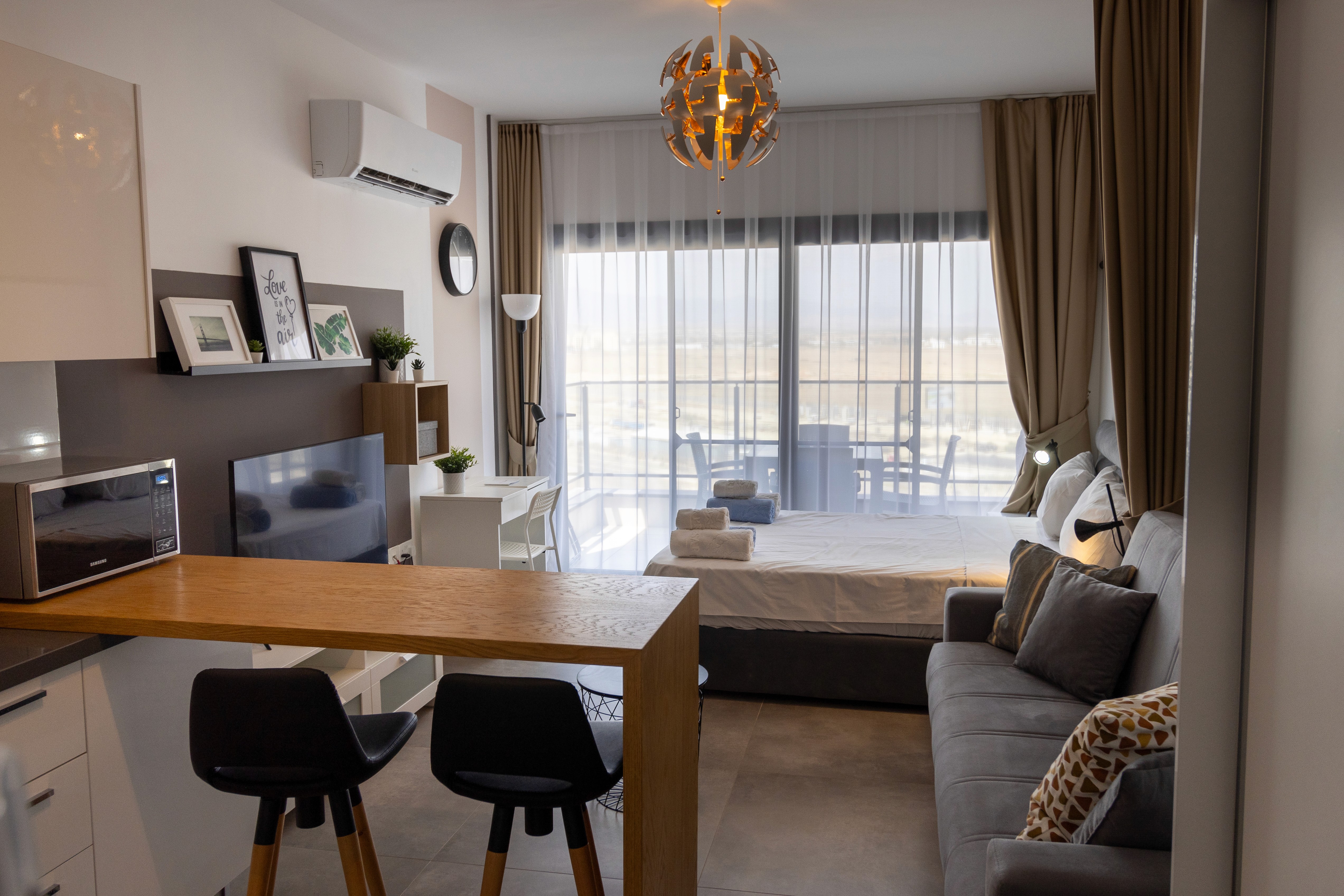 Perfectly located between sandy golden Long Beach and historical sights, Caesar Resort & SPA combines home comfort apartments with panoramic Mediterranean views. Experience the relaxing collection of extensive leisure facilities and refreshing pools while your kids have fun at the colorful playgrounds or game room.