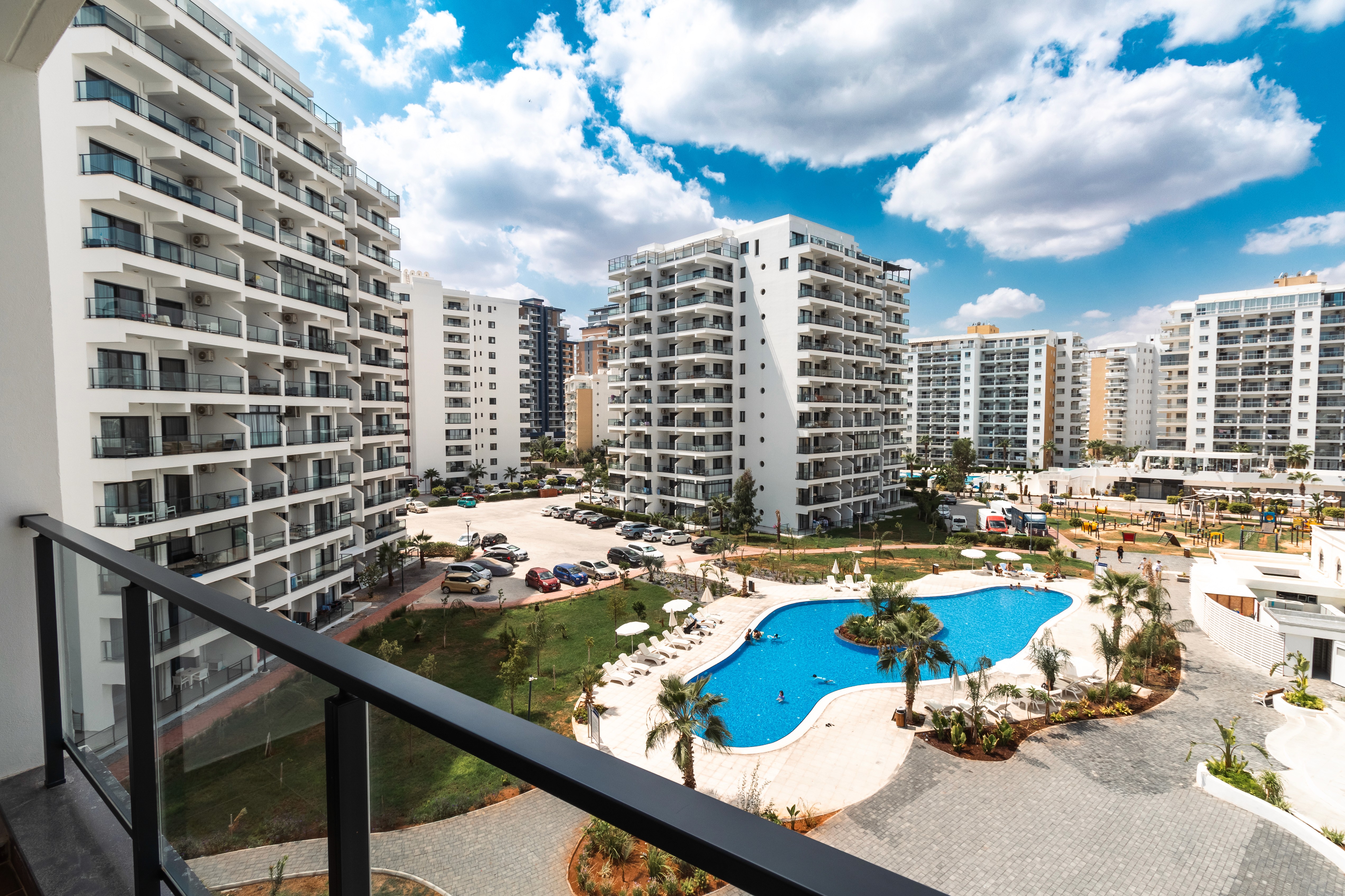 Caesar Resort in North Cyprus highlights it as a modern high-rise development located 600 meters from a sandy beach, offering a wide range of facilities for both vacation homes and permanent residences.