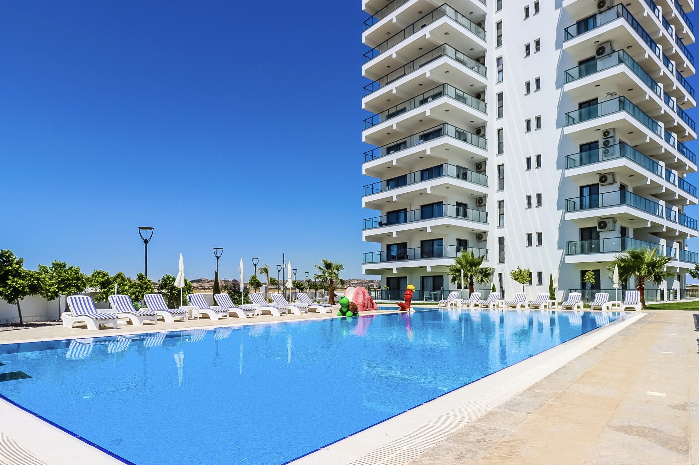 Caesar Resort in North Cyprus highlights it as a modern high-rise development located 600 meters from a sandy beach, offering a wide range of facilities for both vacation homes and permanent residences.